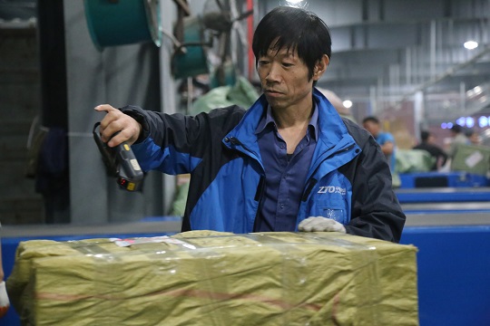 2014年8月,30歲的邵金光將5歲大的女兒和8個月大的兒子托付給家人,成為了中通河南漯河轉(zhuǎn)運中心到件掃描組的一員。由于工作忙碌,她不得不給小兒子斷了奶;冬季嚴寒,她的雙手長出了凍瘡,每天下班用辣椒水涂抹消腫后第二天照常投入工作。一年多時間以來,除了過年,邵金光從未休息過,她也因此成為了同事們眼中的“模范標兵”。